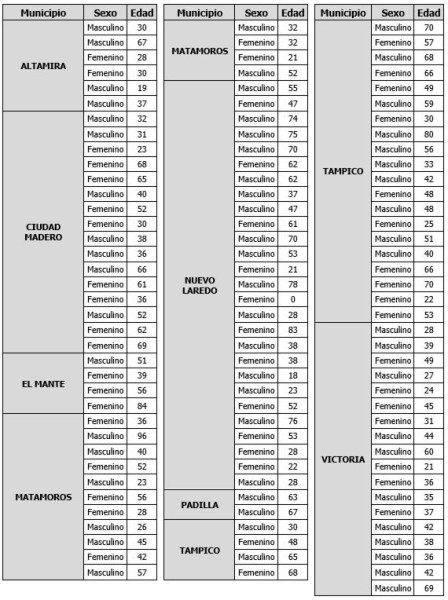 Mientras que las defunciones por género, edad y localidad corresponden a:
