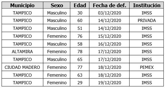 CIUDAD VICTORIA, Tamaulipas.- Al confirmar 112 nuevos casos de COVID-19 y 10 defunciones asociadas a la pandemia, la secretaria de Salud de Tamaulipas Gloria Molina Gamboa advirtió que el número de contagios podría aumentar tras los festejos de fin de año, por lo que reiteró el llamado a quedarse en casa el mayor tiempo posible.