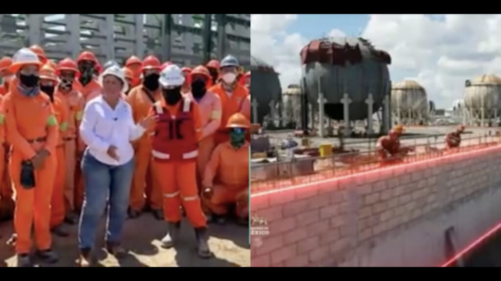 En el video, se explicó que “de acuerdo a la programación de los trabajos de construcción en las 17 plantas de proceso continúan los trabajos de colocación de estructura metálica y charolas en las plantas combinadas y coquizadora del paquete uno. En el paquete dos se avanzó con la colocación de equipos en las cimentaciones ya preparadas, al igual que en los paquetes tres y cuatro”.