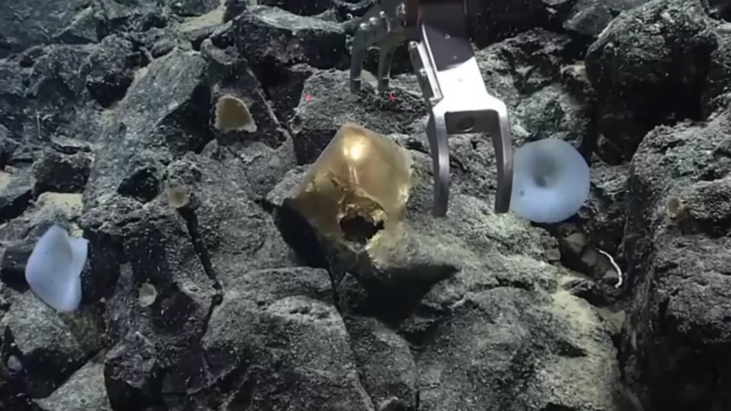 El equipo que opera el submarino observó una rajadura en la esfera dorada y después del contacto con los brazos robóticos de la nave indicó que el objeto era delicado al tacto y usaron una herramienta de succión para recogerlo.
